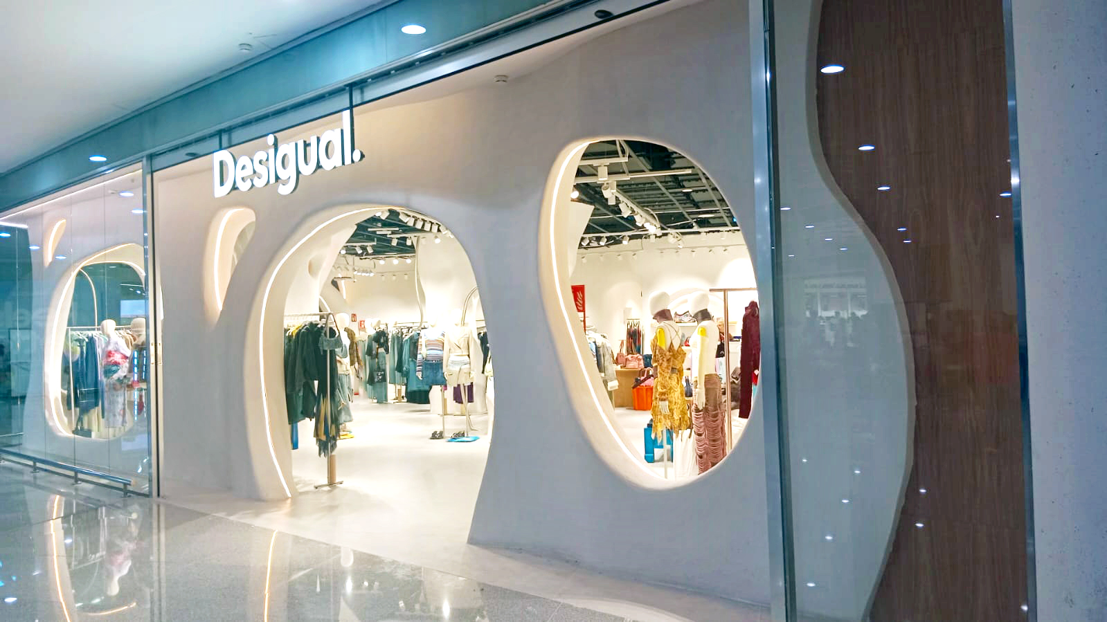 Nos équipes basées à Saragosse ont accompagné Desigual dans la réalisation de sa nouvelle boutique à l’aéroport de Palma de Majorque. Ce projet, d’une grande complexité technique en raison de son design innovant et des contraintes logistiques propres à un environnement aéroportuaire, a été livré dans le strict respect des délais fixés par le client.