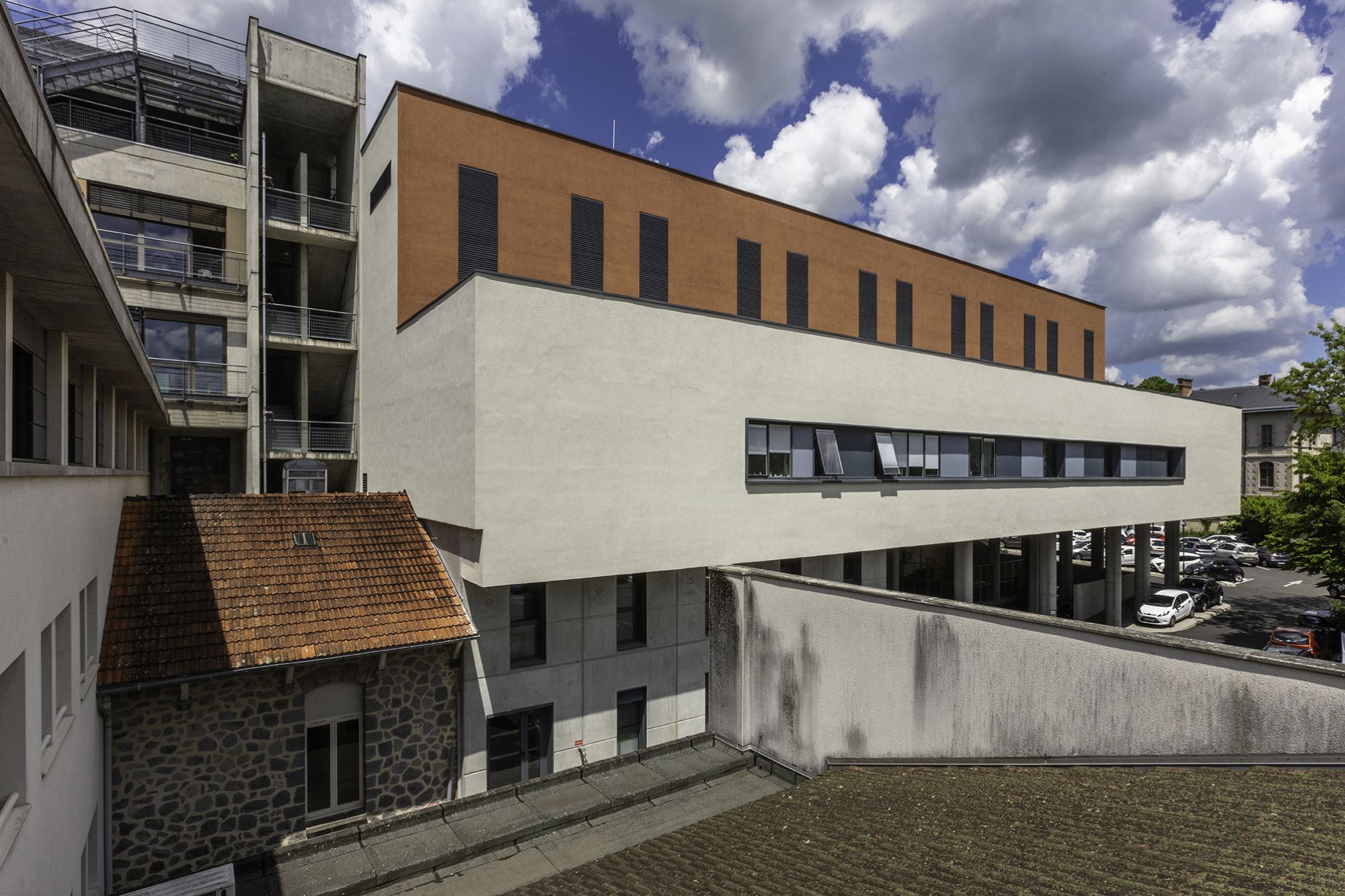 On the historically suburban Henri Mondor hospital site, the hospital is undergoing a transformation. The challenges of the project are to build strong links with the existing, both functionally and spatially, while creating a unitary and coherent whole. The project is therefore a continuation of what already exists and constitutes a unique whole, without breaking the level. At the heart of the project is the technical platform that brings together the operating room, endoscopy and the birth service.
